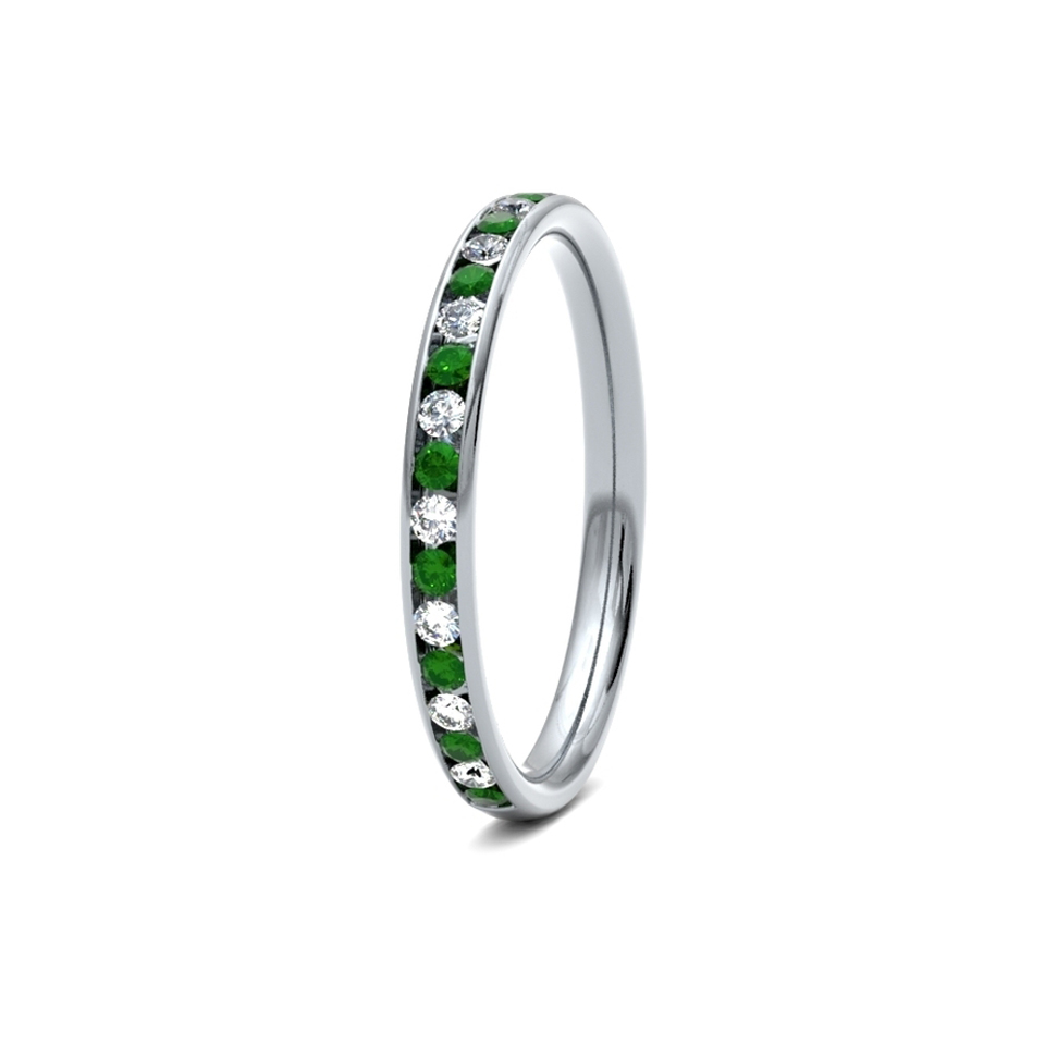 Round Brilliant Cut Channel Set Emarald And Diamond Ring 2.4mm designed for a 'comfort' fit with a round inside and outside.
