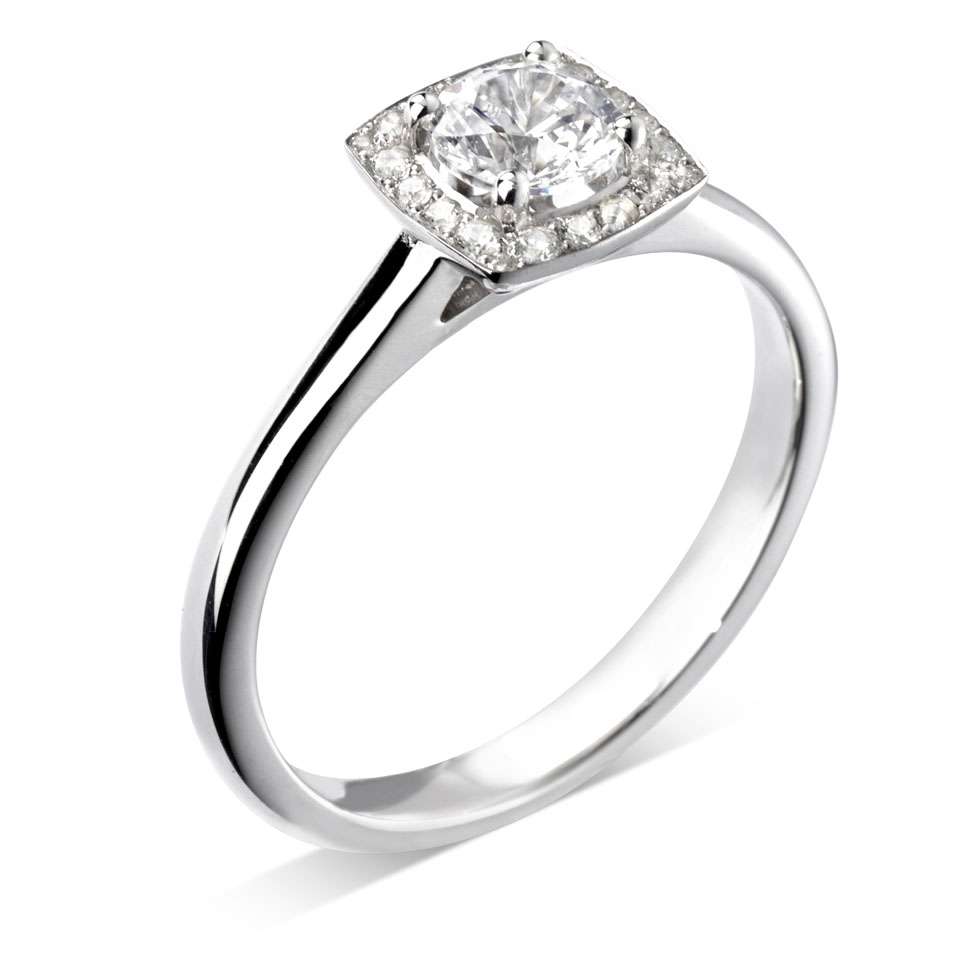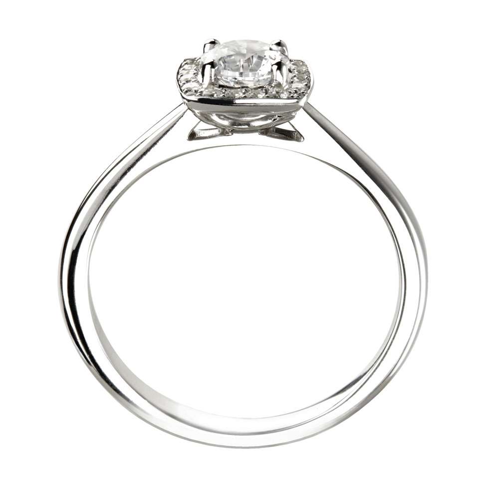 A cushion shaped halo with plain shoulders for a round centre stone.