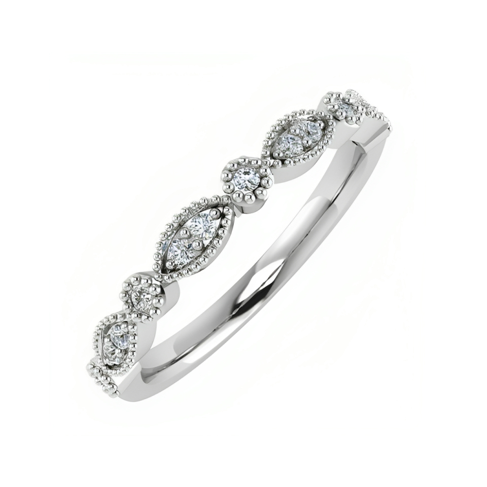 Round Brilliant Cut Vintage Diamond Eternity Ring designed for a 'comfort' fit with a round inside and outside.