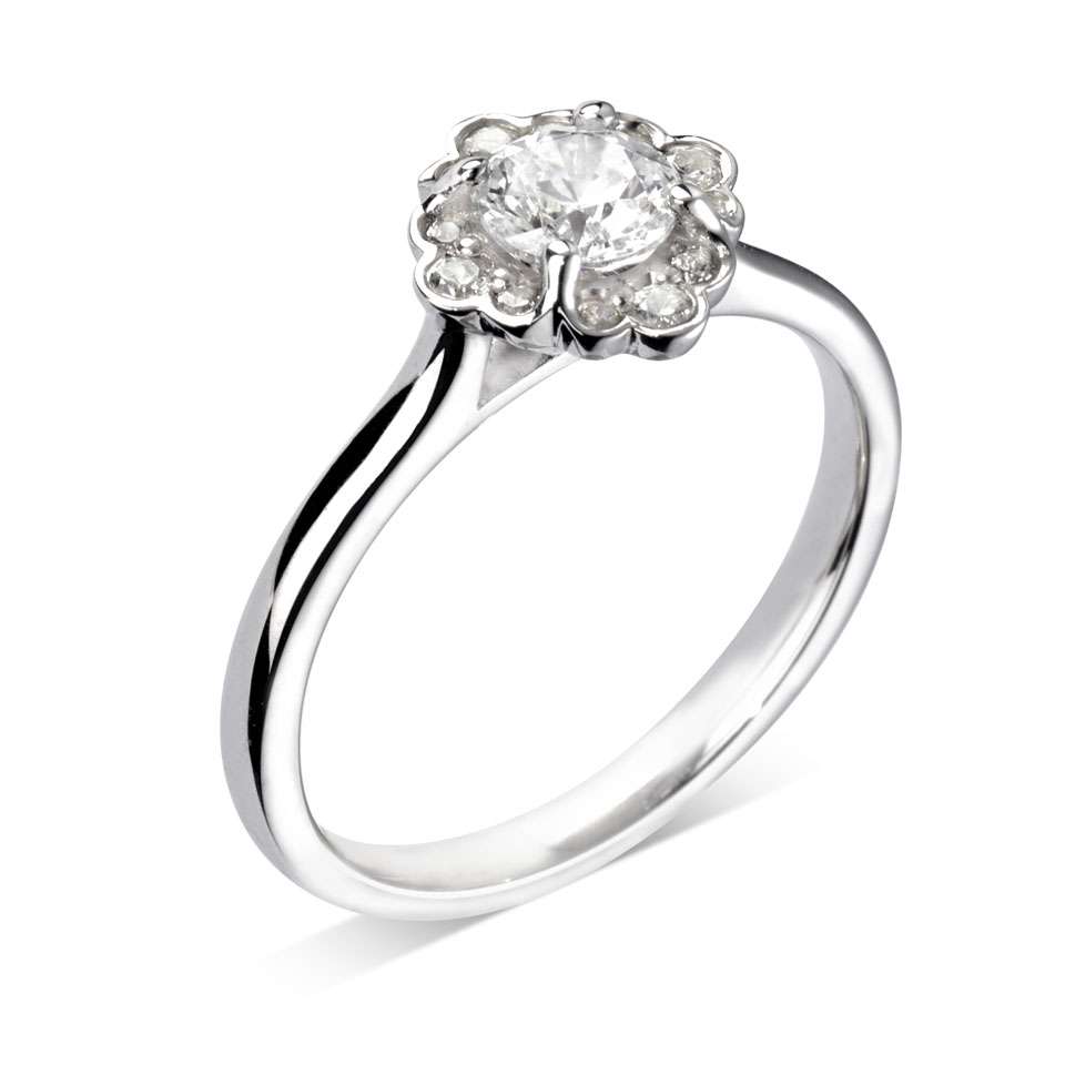 A scalloped edge halo with plain shoulders for a round centre stone.